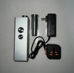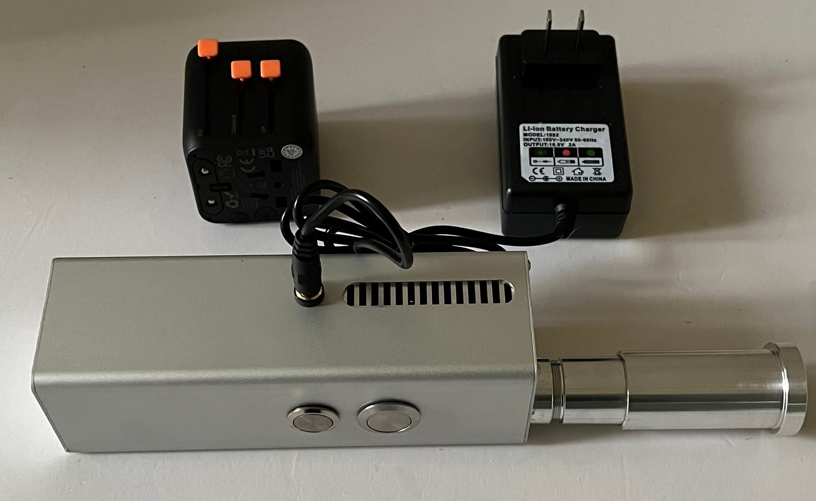 Complete set of four components: 1. Host. 2. Charger. 3. Plug converter. 4 Adjustable focus lens (As shown in the attached image)