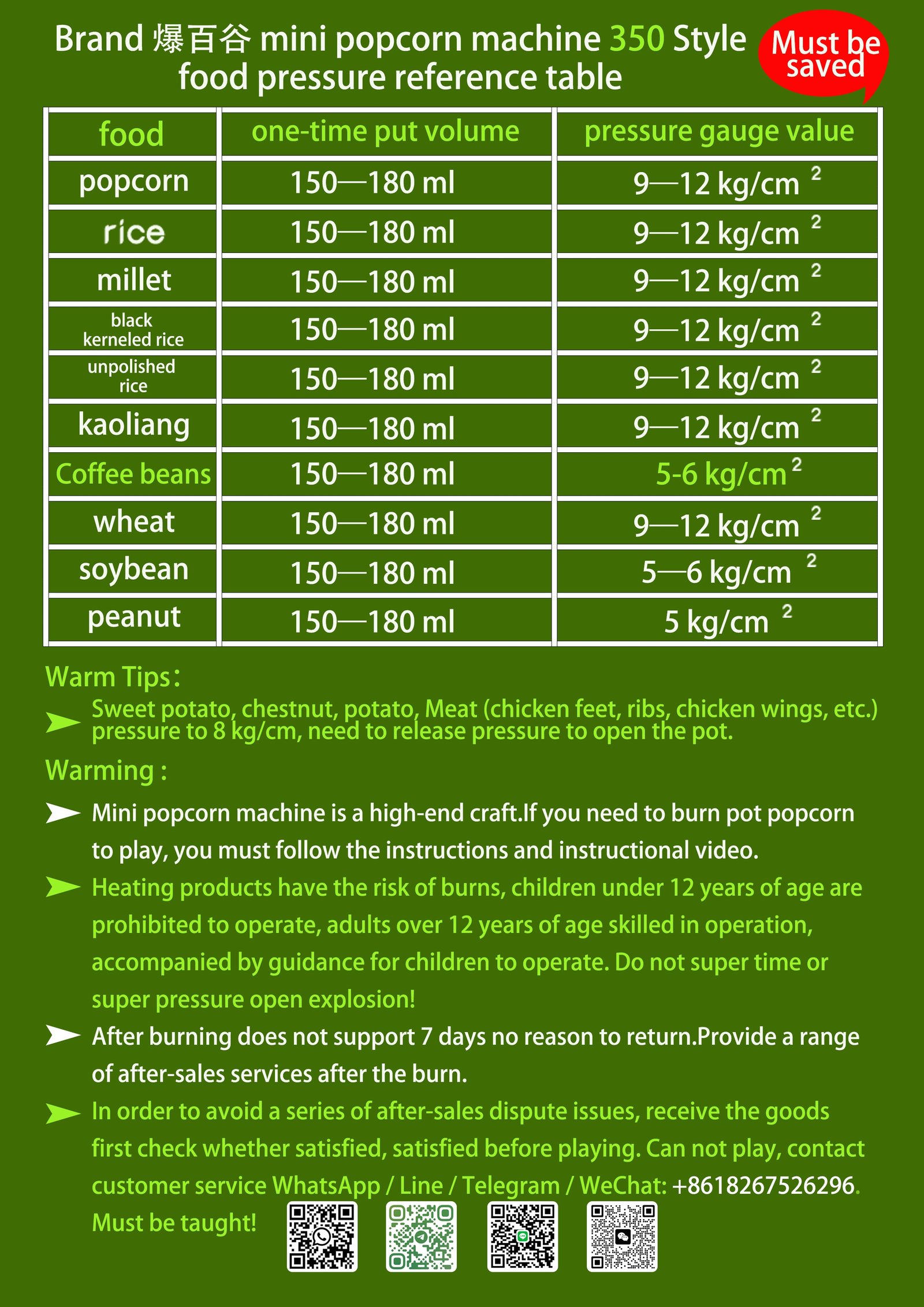 (3) If heating time too long, pressure reach to 20 bar, it has auto exhaust function, so no need worry, it will never explode. Very safe.