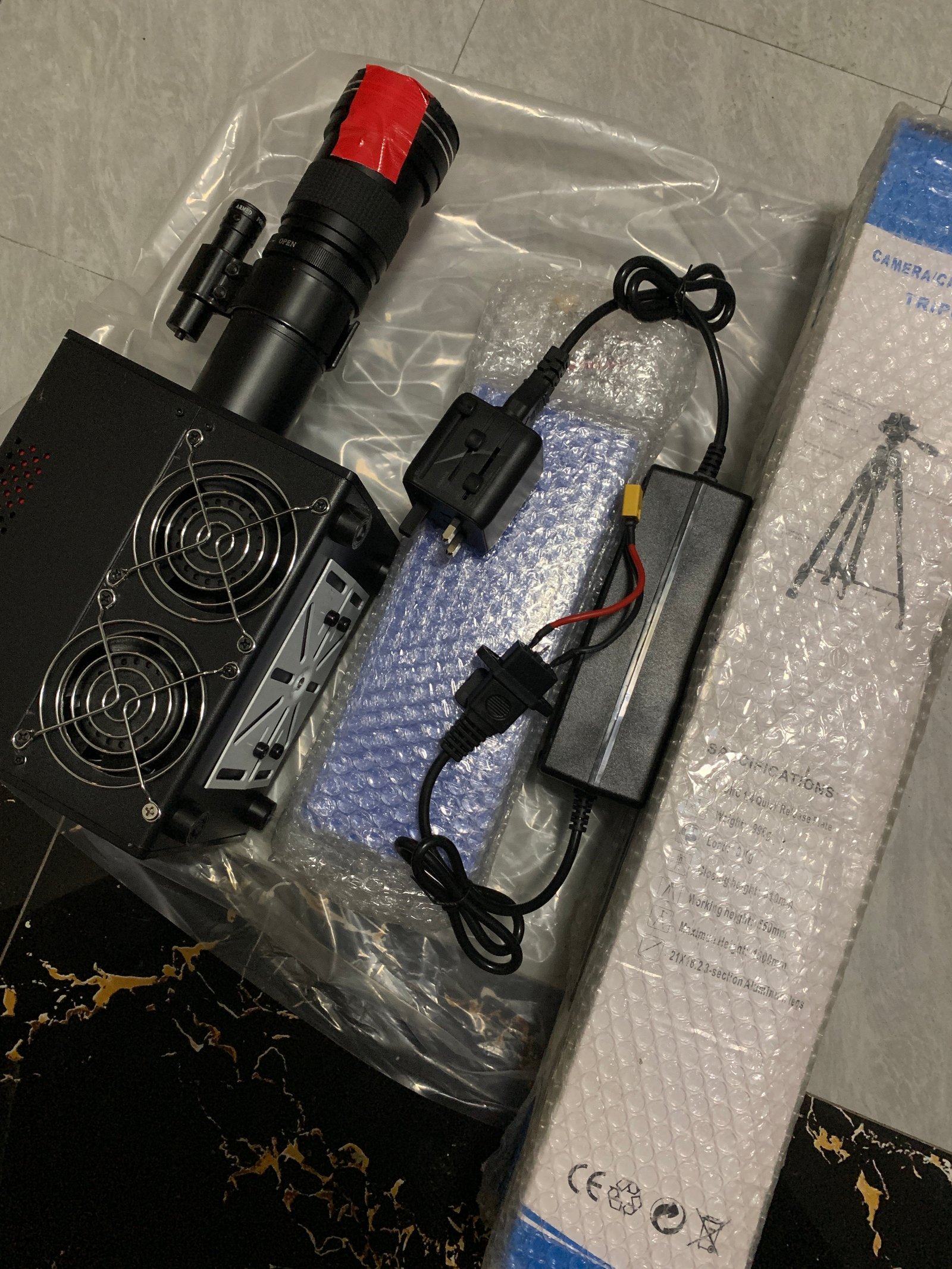 2. Comes with batteries, tripod, and 100 remote controls;