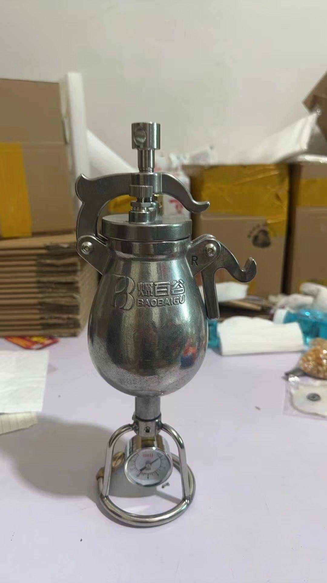 Included Components : wire brush ①the decor wood platform, ②the decor metal gourd, ③Electronic version of the manual, ④popcorn pot 380ML, ⑤Rotating suppor, ⑥Support tools kit, ⑦Vintage spoons, ⑧fireplace, ⑨one more original pressure gauge, ⑩bag, ⑪gloves. The solid wood base make it better for you to show your popcorn makers.