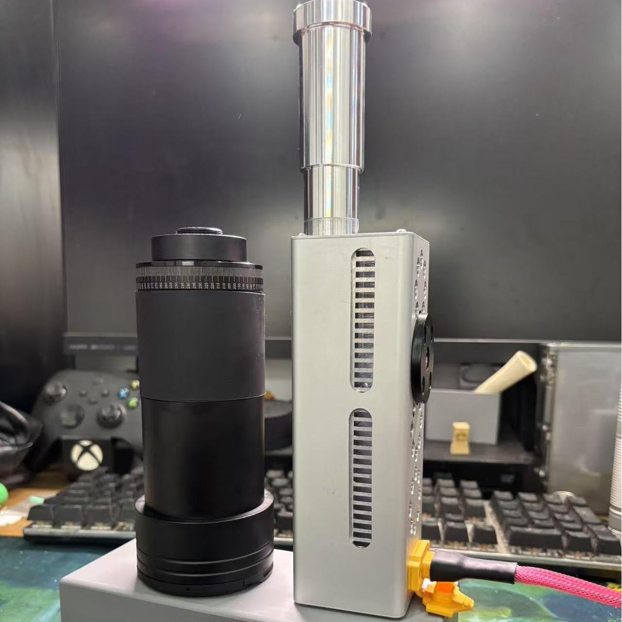 YZ260-DIY Laser Cannon. 260W (Battery DC 33.6V 5Ah; Wavelength 915). Range 30-50 meters. Battery life 5 years, with fast charging.