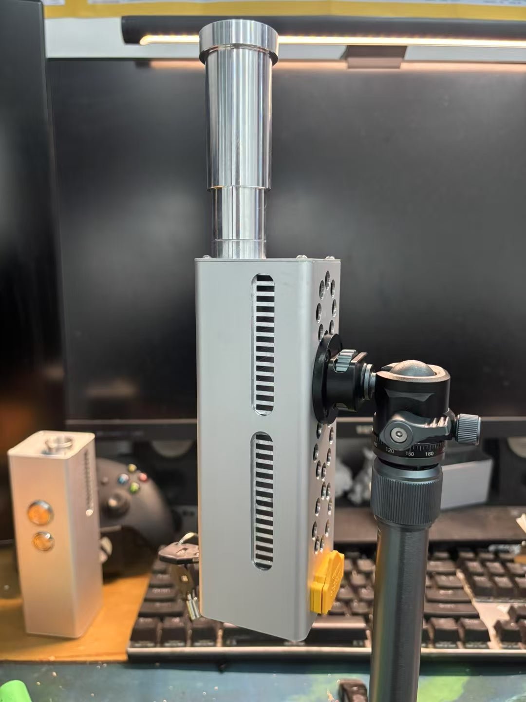 3. Built-in gimbal interface, compatible with 1/4″ or 3/8″ tripods.